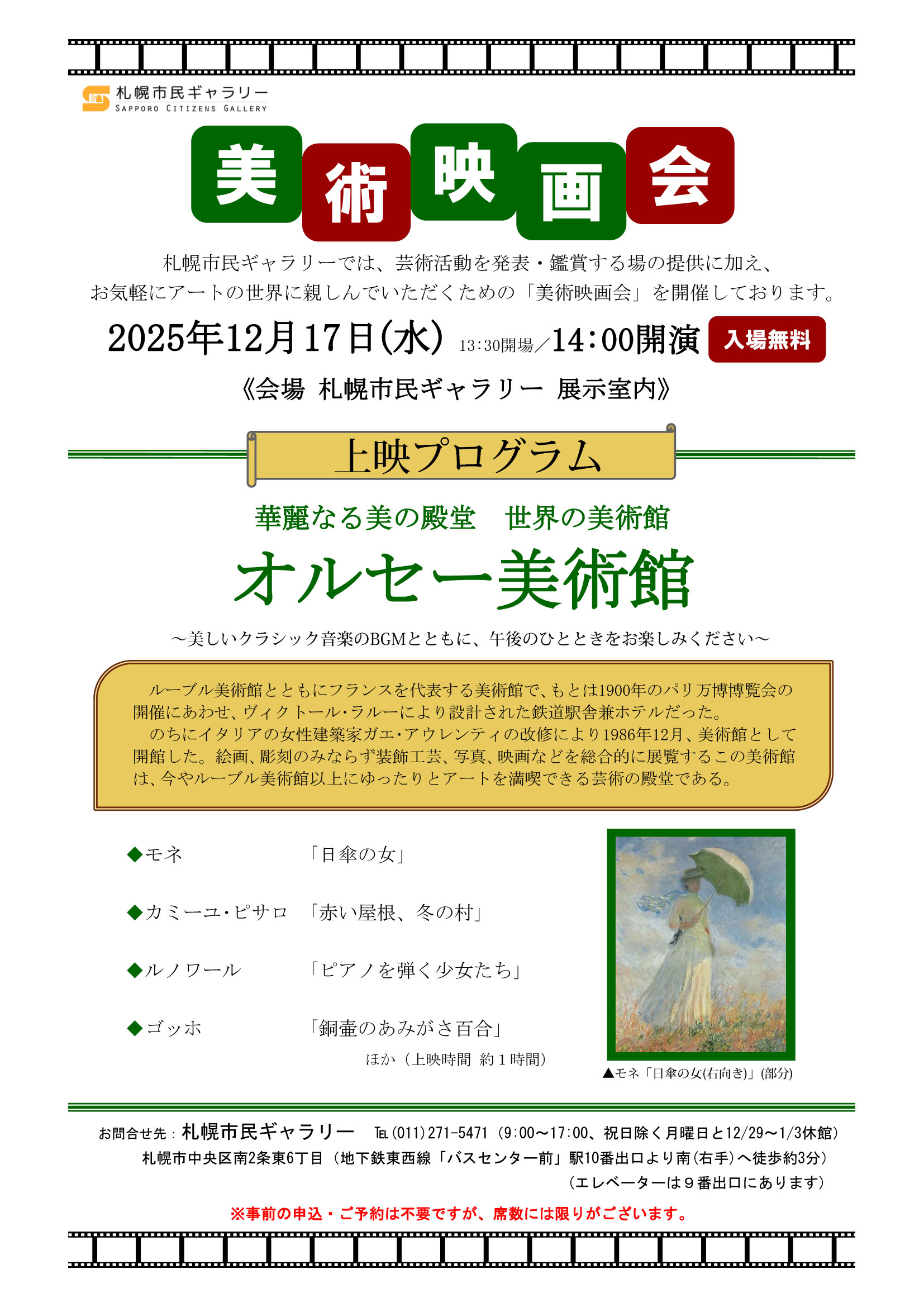 上映プログラム | 麗なる美の殿堂 世界の美術館シリーズより 『オルセー美術館』 |